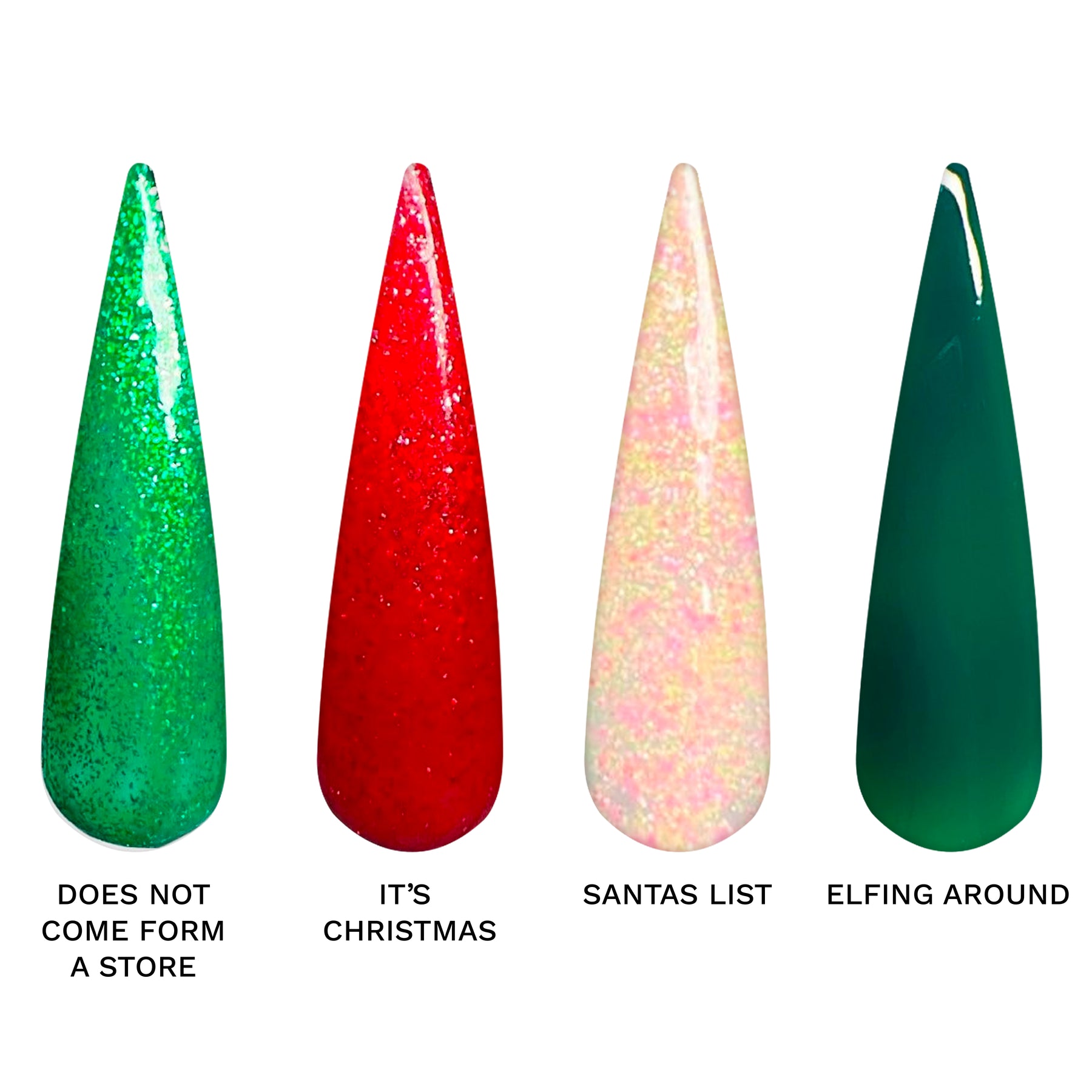 1. Elfing around-Dark green -can be a jelly color with 2 coats or 3 to be solid.